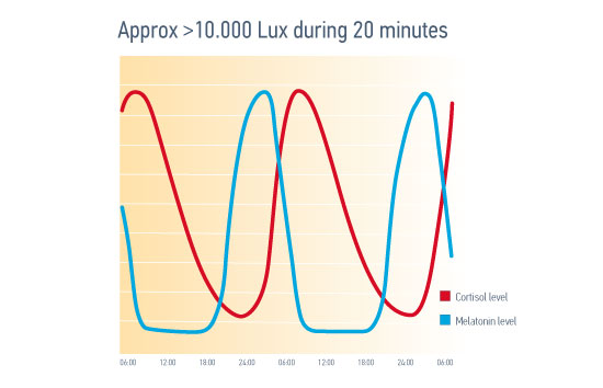 Enough natural daylight every morning is vital for resetting our circadian rhythm , shifting between Cortisol and Melatonin as we otherwise will experience a light version of “jet-lag” with a negative effect on our well being.
